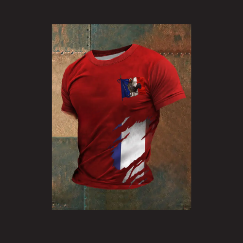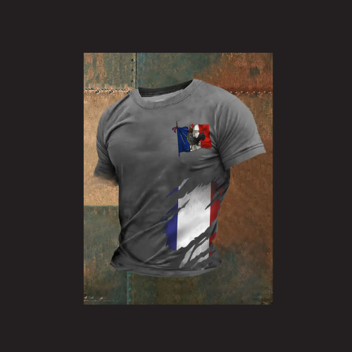 Affichez votre amour pour la France avec ce t-shirt unique, orné du fier coq gaulois et de l’emblématique drapeau tricolore.